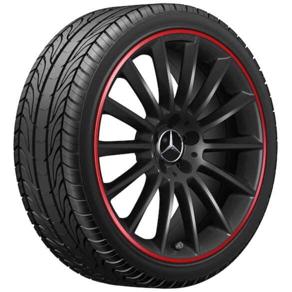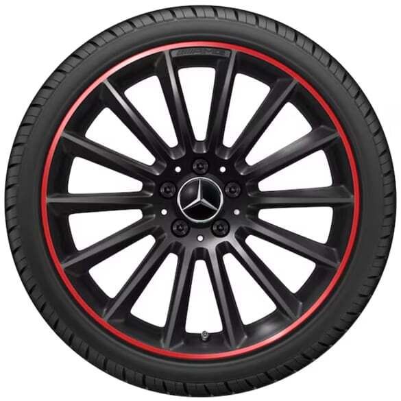 Колесный диск AMG многоспицевый. Параметры диска: 8 J x 19 ET 40 (19 дюймов). Цвет: Черный красный кант. Материал: Алюминий. Рекомендуемая резина: 235/35 R19. Мост: Передний-Задний мост.