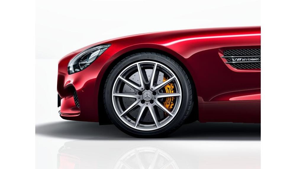 Колесный диск AMG. Параметры диска:9 J x 19 ET 61 (19 дюймов). Цвет: Серый титан. Материал: Алюминий. Рекомендуемая резина: 265/35 R19. Мост: Передний мост.