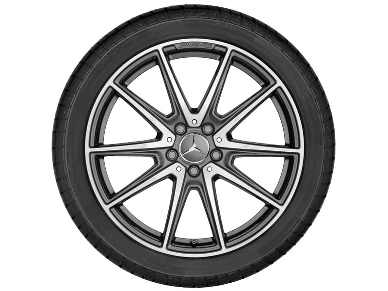 Колесный диск AMG. Параметры диска:9 J x 19 ET 61 (19 дюймов). Цвет: Серый титан. Материал: Алюминий. Рекомендуемая резина: 265/35 R19. Мост: Передний мост.