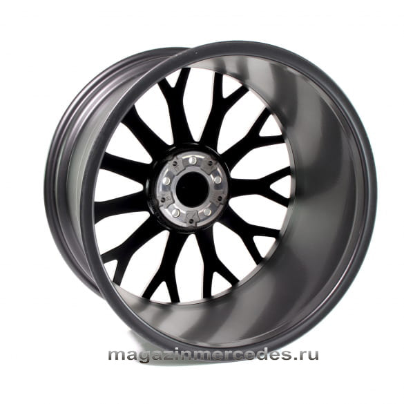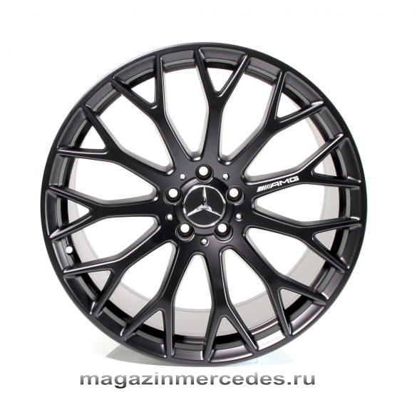 Колесный диск AMG. Параметры диска:9 J x 19 ET 61 (19 дюймов). Цвет: Черный матовый. Материал: Алюминий. Рекомендуемая резина: 265/35 R19. Мост: Передний мост.