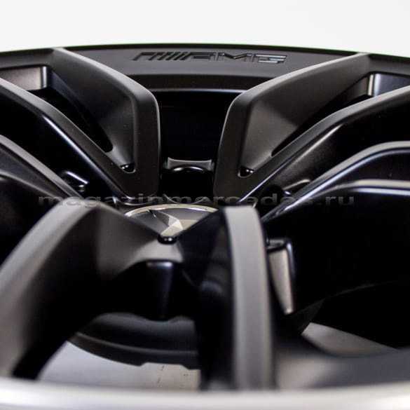 Колесный диск AMG с 5 двойными спицами. Параметры диска:9,5 J x 19 ET 22.5 (19 дюймов). Цвет: черный матовый. Материал: Алюминий. Рекомендуемая резина: 255/45 R19. Мост: Передний мост.