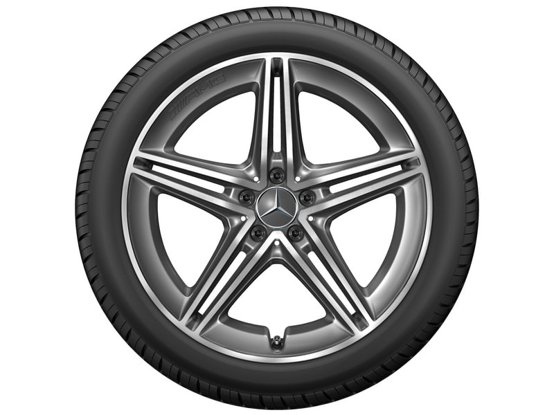 Колесный диск AMG с 5 двойными спицами. Параметры диска:9,5 J x 20 ET 25,1 (20 дюймов). Цвет: Серый тантал. Материал: Алюминий. Рекомендуемая резина: 265/40 R20. Мост: Передний мост.