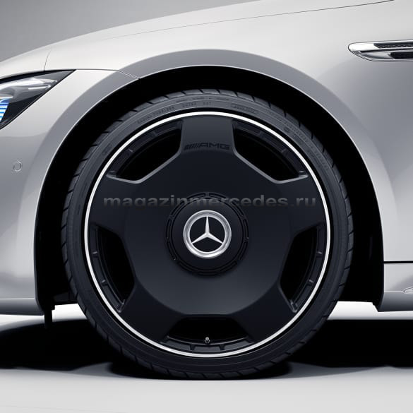 Колесный диск AMG с 5 отверстиями. Параметры диска:10 J x 21 ET 30 (21 дюймов). Цвет: черный матовый. Материал: Алюминий. Рекомендуемая резина: 315/30 R21. Мост: Передний мост.