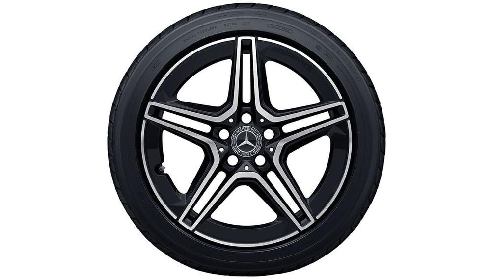 Колесный диск AMG с 5 двойными спицами. Параметры диска: 8,5 J x 18 ET 49 (18 дюймов). Цвет: черный. Материал: Алюминий. Рекомендуемая резина: 245/40 R18. Мост: Задний мост.