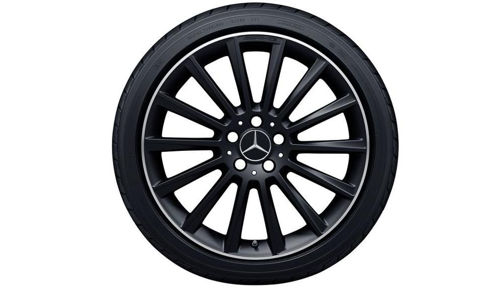 Колесный диск AMG многоспицевый. Параметры диска: 8,5 J x 19 ET 52 (19 дюймов). Цвет: черный матовый. Материал: Алюминий. Рекомендуемая резина: 255/35 R19. Мост: Задний мост.
