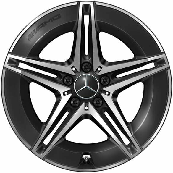 Колесный диск AMG с 5 двойными спицами. Параметры диска: 7,5 J x 18 ET 40 (18 дюймов). Цвет: черный. Материал: Алюминий. Рекомендуемая резина: 225/45 R18. Мост: Передний мост.