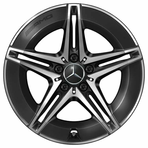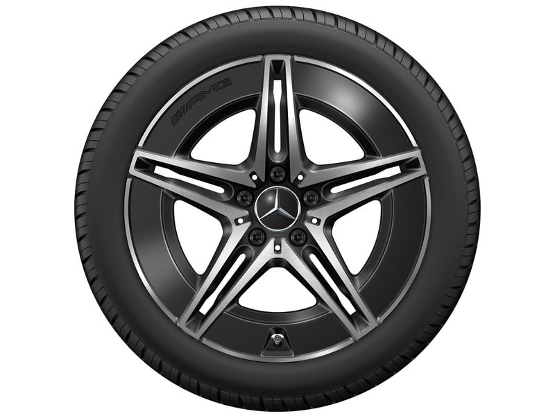 Колесный диск AMG с 5 двойными спицами. Параметры диска: 9 J x 18 ET 58 (18 дюймов). Цвет: черный. Материал: Алюминий. Рекомендуемая резина: 255/40 R18. Мост: Задний мост.