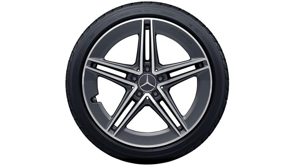 Колесный диск AMG с 5 двойными спицами. Параметры диска:10,5 J x 19 ET 57 (19 дюймов). Цвет:Серый тантал. Материал: Алюминий. Рекомендуемая резина: 285/30 R19. Мост: Задний мост.