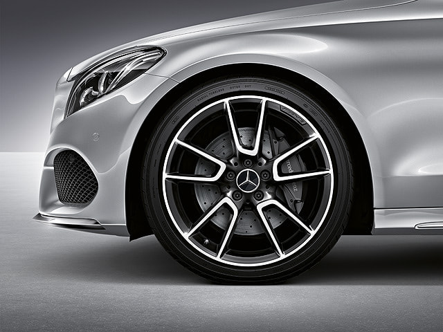 Колесный диск AMG с 5 двойными спицами. Параметры диска: 7,5 J x 19 ET 44 (19 дюймов). Цвет: черный. Материал: Алюминий. Рекомендуемая резина: 225/40 R19. Мост: Передний мост.