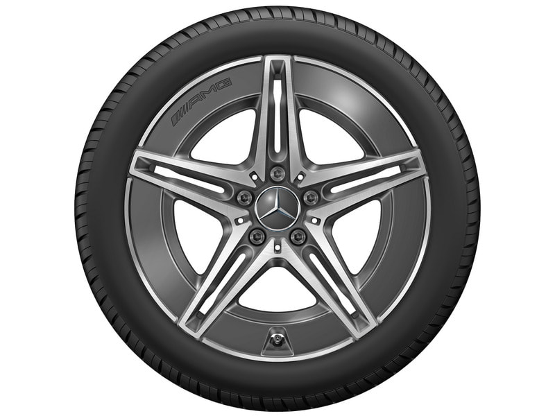 Колесный диск AMG с 5 двойными спицами. Параметры диска: 9 J x 18 ET 58 (18 дюймов). Цвет: Серый тантал. Материал: Алюминий. Рекомендуемая резина: 255/40 R18. Мост: Заднийй мост.