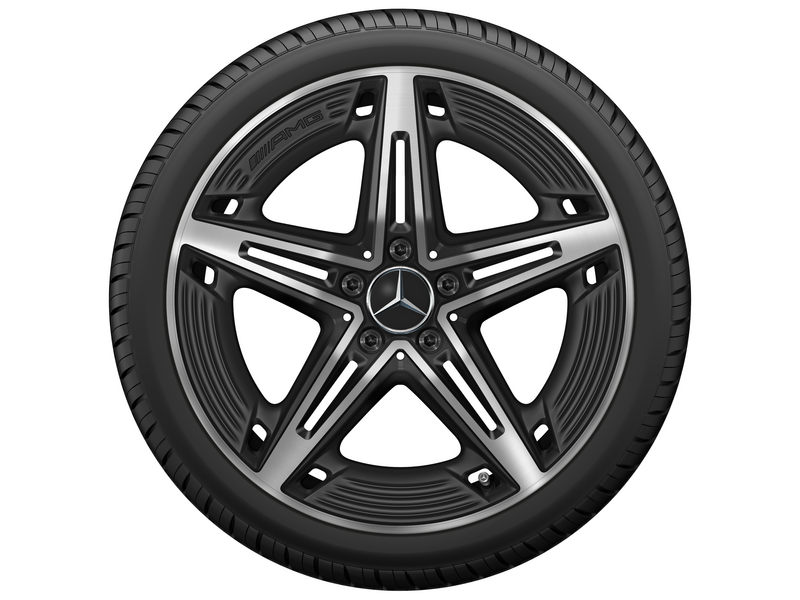 Колесный диск AMG. Параметры диска: 9 J x 19 ET 52 (19 дюймов). Цвет: Черный матовый полированый. Материал: Алюминий. Рекомендуемая резина: 255/35 R19.