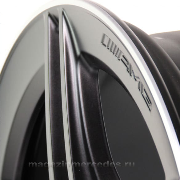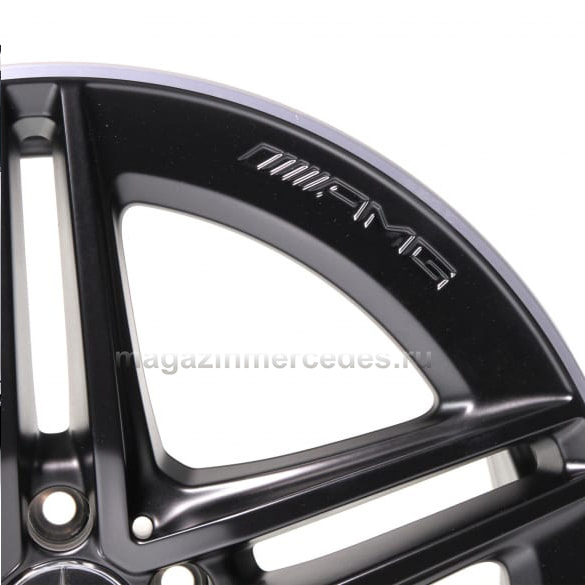 Колесный диск AMG с 5 двойными спицами. Параметры диска: 9 J x 19 ET 52 (19 дюймов). Цвет: Черный матовый. Материал: Алюминий. Рекомендуемая резина: 255/35 R19. Мост: Передний-задний мост