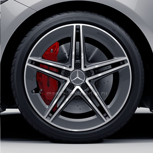 Колесный диск AMG с 5 двойными спицами. Параметры диска: 9 J x 19 ET 52 (19 дюймов). Цвет: Серый тантал. Материал: Алюминий. Рекомендуемая резина: 255/35 R19. Мост: Передний-задний мост
