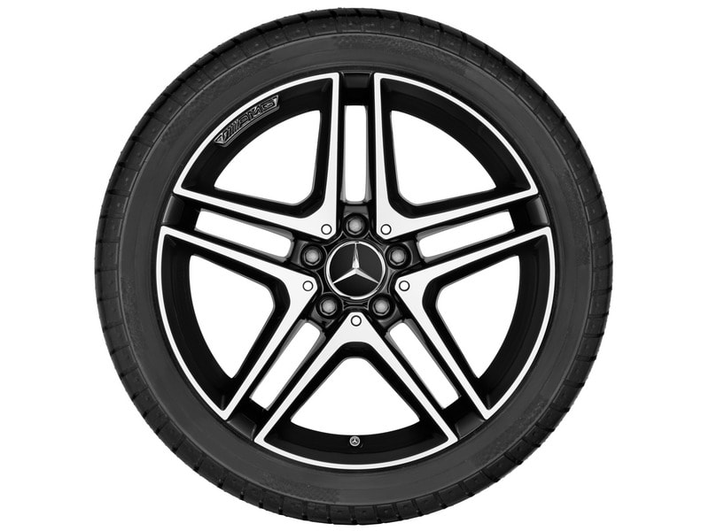 Колесный диск AMG с 5 сдвоенными спицами. Параметры диска: 8 J x 18 ET 48 (18 дюймов). Цвет:черный. Материал: Алюминий. Рекомендуемая резина: 235/40 R18. Мост: Передний - Задний мост.