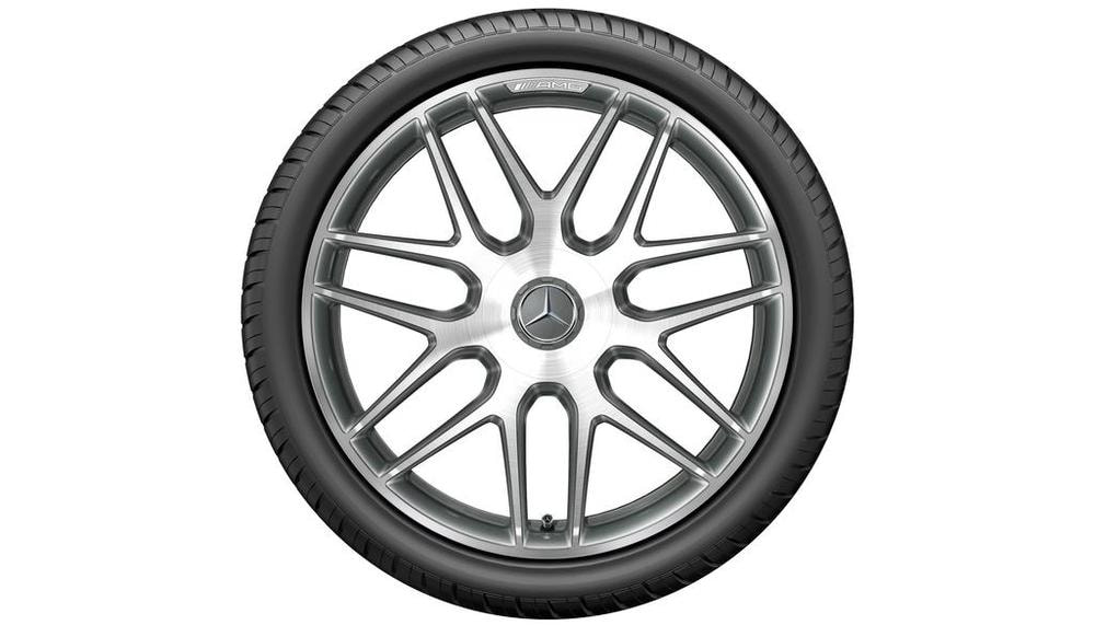 Колесный диск AMG многоспицевый. Параметры диска: 10 J x 20 ET 55 (20дюймов). Цвет:Серый титан. Материал: Алюминий. Рекомендуемая резина: 295/30 R20. Мост: Задний мост.