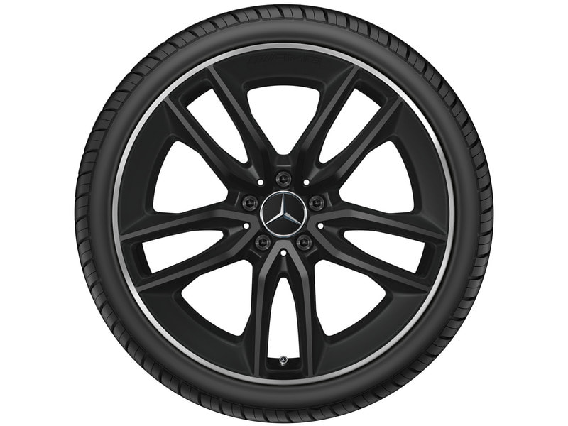 Колесный диск AMG с 5 сдвоенными спицами . Параметры диска: 9 J x 20 ET 49 (20дюймов). Цвет: Черный матовый. Материал: Алюминий. Рекомендуемая резина: 275/30 R20. Задний мост