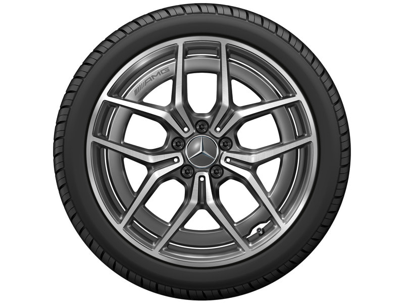 Колесный диск AMG с 5 двойными спицами. Параметры диска: 9 J x 19 ET 49 (19 дюймов). Цвет:Серый тантал. Материал: Алюминий. Рекомендуемая резина: 275/35 R19. Мост: Задний мост.