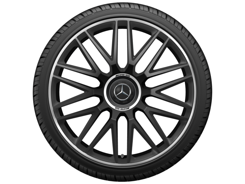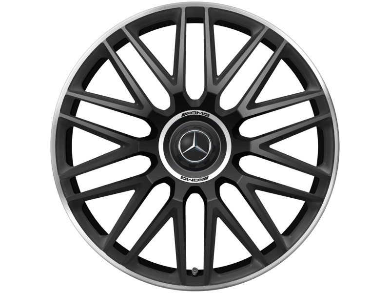 Колесный диск AMG. Параметры диска: 10,5 J x 21 ET 43 (21дюймов). Цвет:Черный матовый полированый обод. Материал: Алюминий. Рекомендуемая резина: 295/30 R21. Мост: Задний мост.
