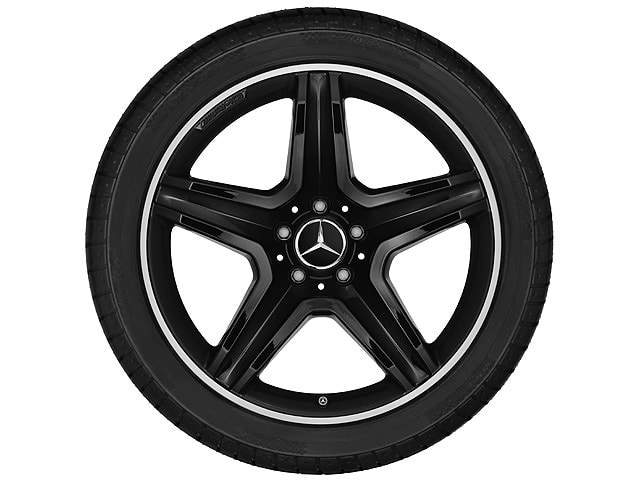 Колесный диск AMG с 5 спицами, . Параметры диска: 8 J x 19 ET 43,5 (19 дюймов). Цвет:черный. Материал: Алюминий. Рекомендуемая резина: 235/45 R19. Мост:Передний- Задний мост.