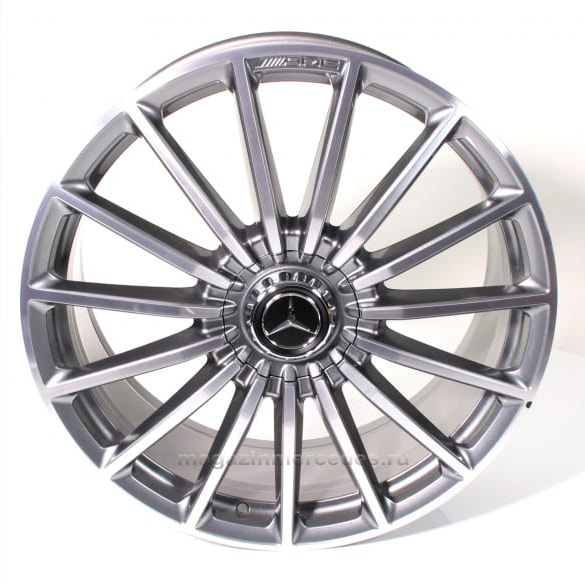 Диск AMG многоспицевый. Параметры диска: 8.5 J x 21 ET 51 (21дюймов). Цвет: Серый титан. Материал: Алюминий. Рекомендуемая резина:255/35 R21. Мост:Передний- Задний мост.