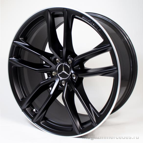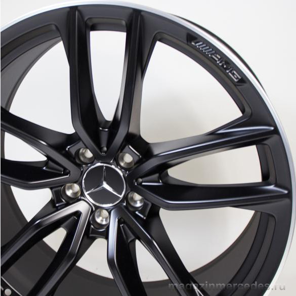 Колесный диск AMG с 5 двойными спицами. Параметры диска: 9,5 J x 21 ET 30 (21 дюймов). Цвет: Черный матовый полированый обод. Материал: Алюминий. Рекомендуемая резина: 265/40 R21. Мост: Передний мост.
