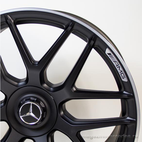 Колесный диск AMG с 7 двойными спицами. Параметры диска: 10 J x 21 ET 28 (21 дюймов). Цвет: Черный матовый . Материал: Алюминий. Рекомендуемая резина: 295/35 R21. Мост: Задний мост.