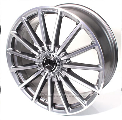 Диск AMG многоспицевый. Параметры диска: 11.5 J x 22 ET 47 (22 дюймов). Цвет: Серый Титан. Материал: Алюминий. Рекомендуемая резина: 325/40 R22. Мост: Задний мост.