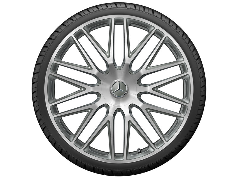 Диск AMG многоспицевый . Параметры диска: 11.5 J x 23 ET 47 (23 дюймов). Цвет: Серый титан . Материал: Алюминий. Рекомендуемая резина: 325/35 R23. Мост: Задний мост.