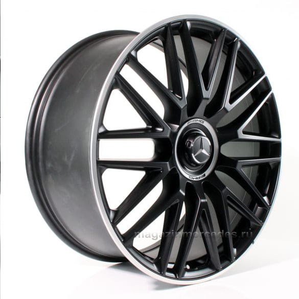 Диск AMG многоспицевый кованый. Параметры диска: 11.5 J x 23 ET 47 (23 дюймов). Цвет: Черный матовый. Материал: Алюминий. Рекомендуемая резина: 325/35 R23. Мост: Задний мост.