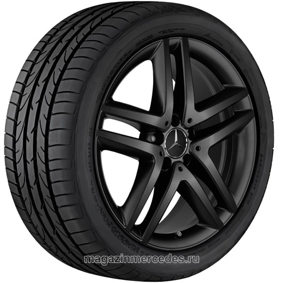 Колесный диск "МБ" с 5 двойными спицами. Параметры диска: 8 J x 19 ET 52 (19 дюймов). Цвет: Черный матовый. Материал: Алюминий. Рекомендуемая резина: 245/45 R19. Мост: Передний-Задний мост.