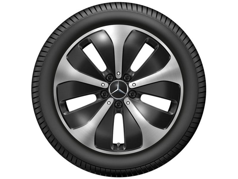 Колесный диск "МБ" с 10 двойными спицами. Параметры диска: 7,5 J x 18 ET 52 (18 дюймов). Цвет: черный полированный. Материал: Алюминий. Рекомендуемая резина: 245/45 R18. Мост: Передний-Задний мост.