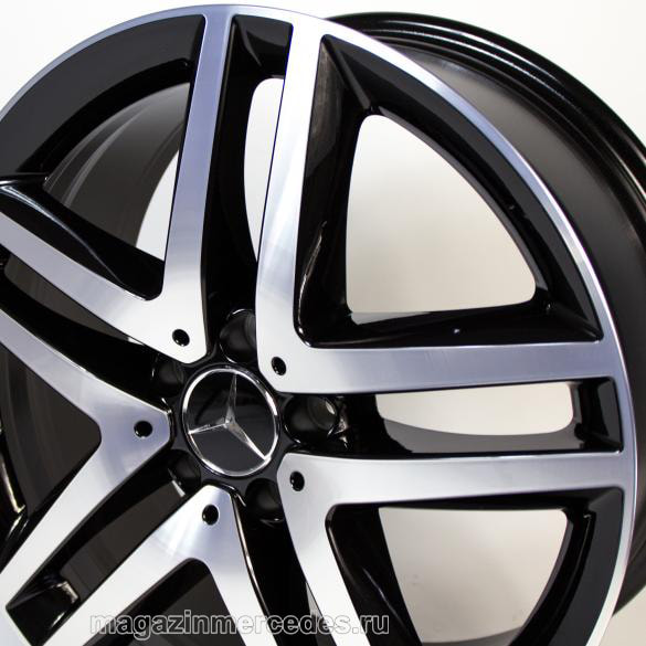 Колесный диск "МБ" с 5 двойными спицами. Параметры диска: 8 J x 19 ET 52 (19 дюймов). Цвет: черный полированный. Материал: Алюминий. Рекомендуемая резина: 245/45 R19. Мост: Передний-Задний мост.