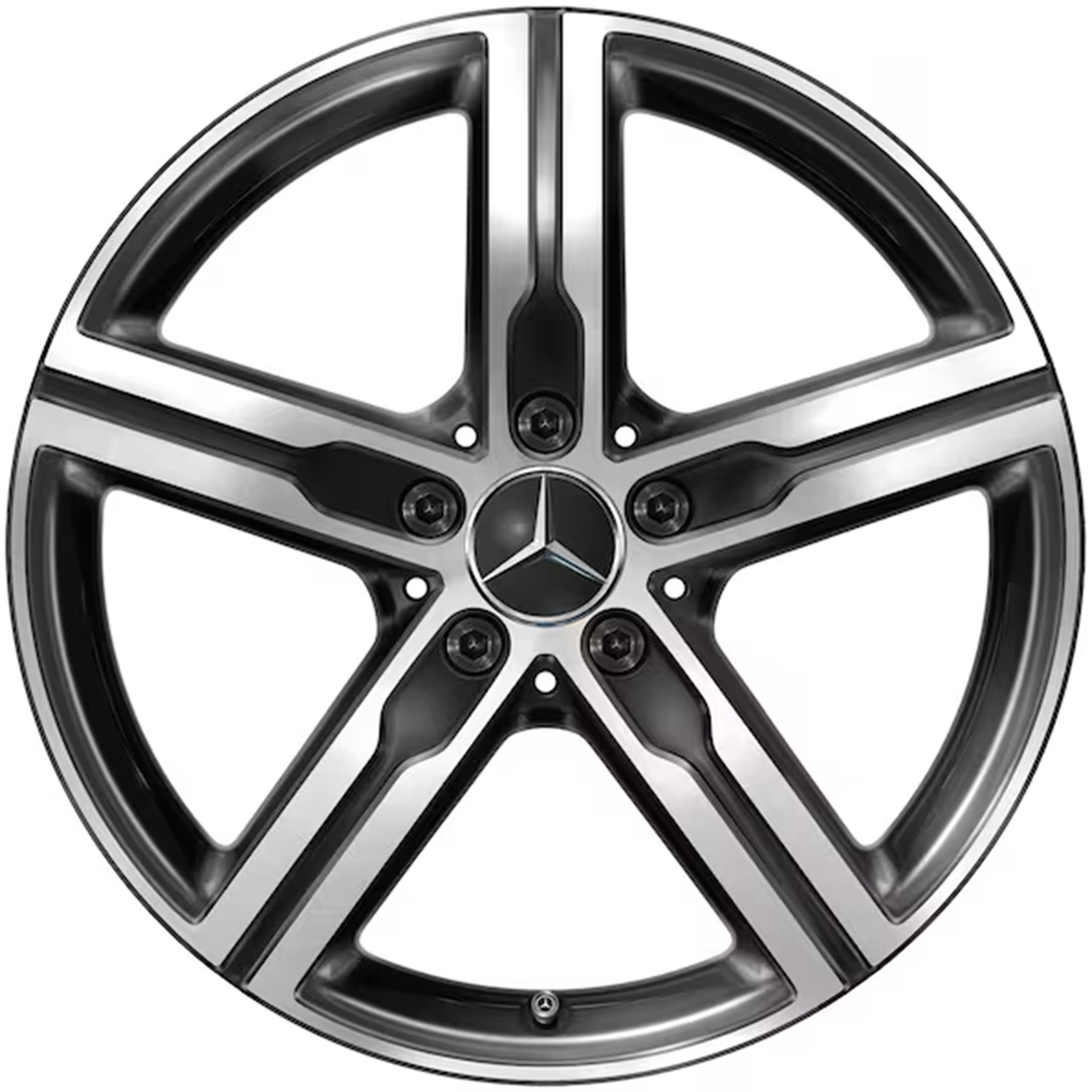 Колесный диск "МБ" с 5 двойными спицами. Параметры диска: 7,5 J x 18 ET 49 (18 дюймов). Цвет: Черный. Материал: Алюминий. Рекомендуемая резина: 225/45 R18. Мост: Передний-Задний мост.