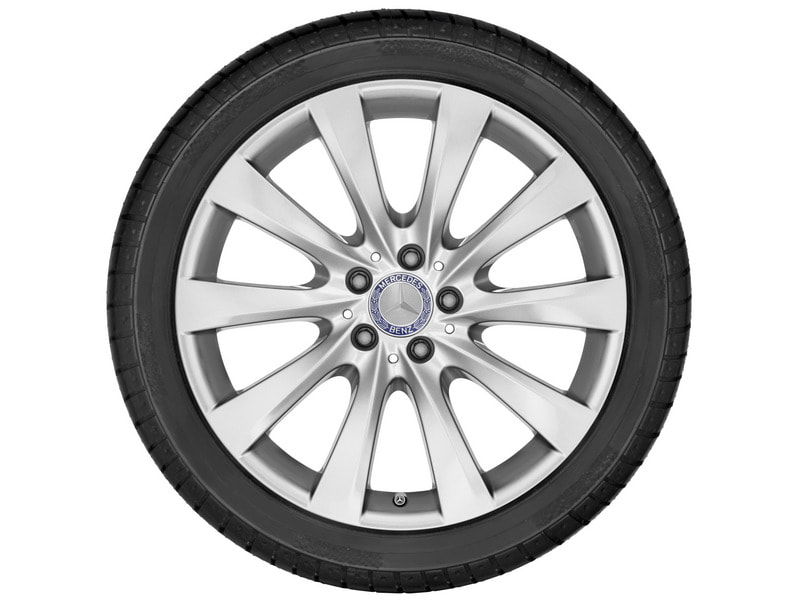 Колесный диск "МБ" с 10 спицами. Параметры диска: 7,5 J x 19 ET 44 (19 дюймов). Цвет:Серебристый ванадий. Материал: Алюминий. Рекомендуемая резина: 225/40 R19. Мост: Передний мост.