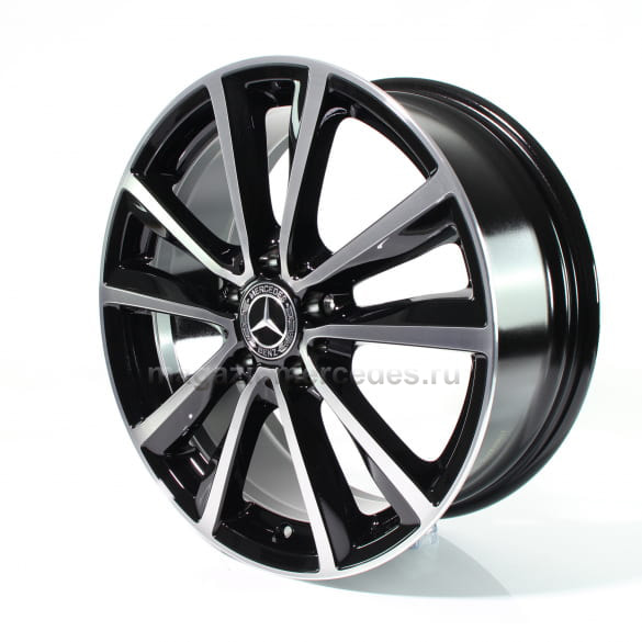 Колесный диск "МБ" с 5 сдвоенными спицами. Параметры диска:7,5 J x 18 ET 52 (18 дюймов). Цвет: черный полированный. Материал: Алюминий. Рекомендуемая резина: 225/40 R18. Мост: Передний-Задний мост.