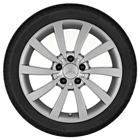 Колесный диск "МБ" с 10 спицами. Параметры диска: 8.5 J x 17 ET 34.5 (17 дюймов). Цвет: Серебристый титан. Материал: Алюминий. Рекомендуемая резина: 245/45 R17. Мост: Передний-Задний мост.