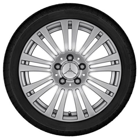 Колесный диск "МБ" с 9 двойными спицами. Параметры диска: 7,5 J x 17 ET 45 (17дюймов). Цвет: Серебристый титан. Материал: Алюминий. Рекомендуемая резина: 235/45 R17. Мост: Передний-Задний мост.