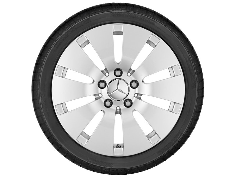 Колесный диск "МБ" с 10 отверстиями . Параметры диска: 8 J x 18 ET 43 (18дюймов). Цвет: Серебристый ванадий. Материал: Алюминий. Рекомендуемая резина: 245/45 R18. Мост: Передний-Задний мост.