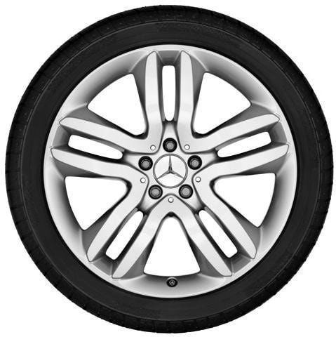 Колесный диск "МБ" с 5 двойными спицами. Параметры диска: 8,5 J x 20 ET 62 (20 дюймов). Цвет: Серебристый титан. Материал: Алюминий. Рекомендуемая резина: 275/50 R20. Мост: Передний-Задний мост.