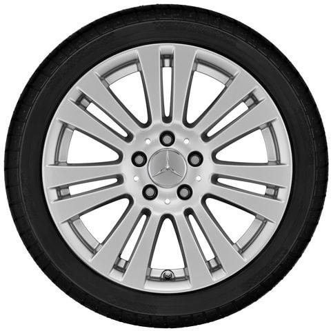 Колесный диск "МБ" с 7 двойными спицами. Параметры диска: 7,5 J x 17 ET 47 (17 дюймов). Цвет: Серебристый титан. Материал: Алюминий. Рекомендуемая резина: 225/45 R17. Мост: Передний-Задний мост.