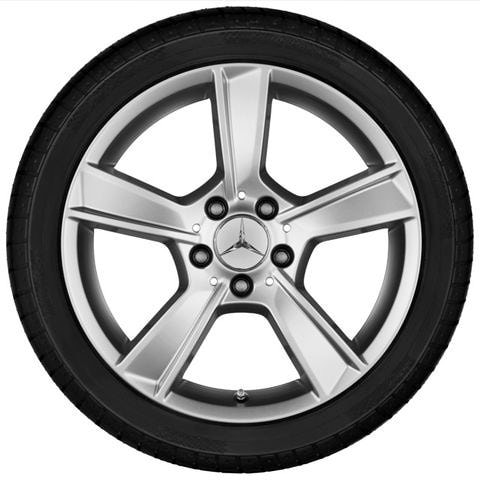 Колесный диск "МБ" с 5 спицами. Параметры диска: 7,5 J x 17 ET 47 (17 дюймов). Цвет: Серебристый титан. Материал: Алюминий. Рекомендуемая резина: 225/45 R17. Мост: Передний-Задний мост. Противоположное колесо: A20440190029765