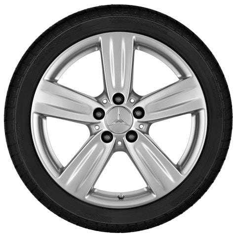 Колесный диск "МБ" с 5 спицами. Параметры диска: 8 J x 17 ET 48 (17 дюймов). Цвет: Серебро. Материал: Алюминий. Рекомендуемая резина: 245/45 R17. Мост: Передний-Задний мост.