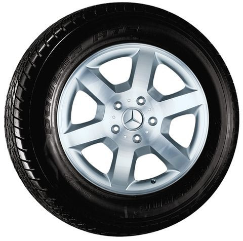 Колесный диск "МБ" с 6 спицами. Параметры диска: 7.5 J x 18 ET 63 (18 дюймов). Цвет: Серебристый. Материал: Алюминий. Рекомендуемая резина: 265/60 R18. Мост: Передний-Задний мост.