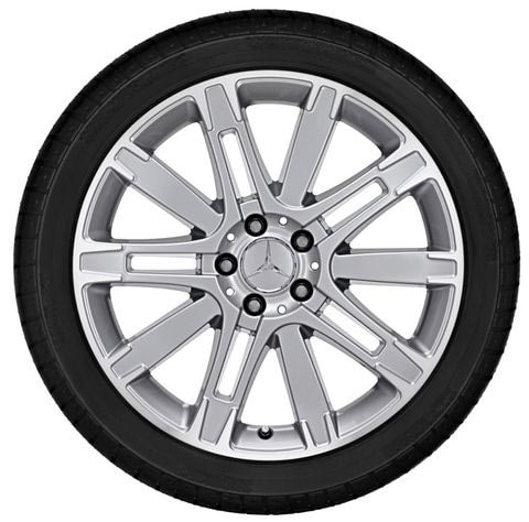 Колесный диск "МБ" с 10 спицами, Perim. Параметры диска: 8.5 J x 19 ET 56 (19 дюймов). Цвет: Серебристый титан. Материал: Алюминий. Рекомендуемая резина: 275/55 R19. Мост: Передний-Задний мост.
