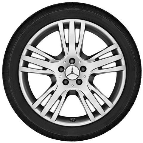 Колесный диск "МБ" с 5 тройными спицами. Параметры диска: 8.5 J x 19 ET 52 (19 дюймов). Цвет: Серебристый титан. Материал: Алюминий. Рекомендуемая резина: 255/45 R19. Мост: Задний мост.