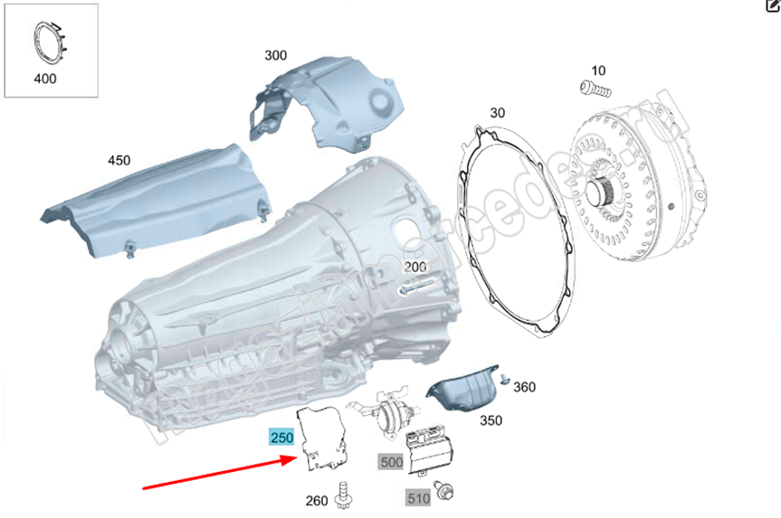 Экран к корпусу коробки передач справа Mercedes E Class W214