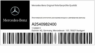 Эластомерный уплотнитель расходомер воздуха к демпферному фильтру Mercedes GLE Class V167