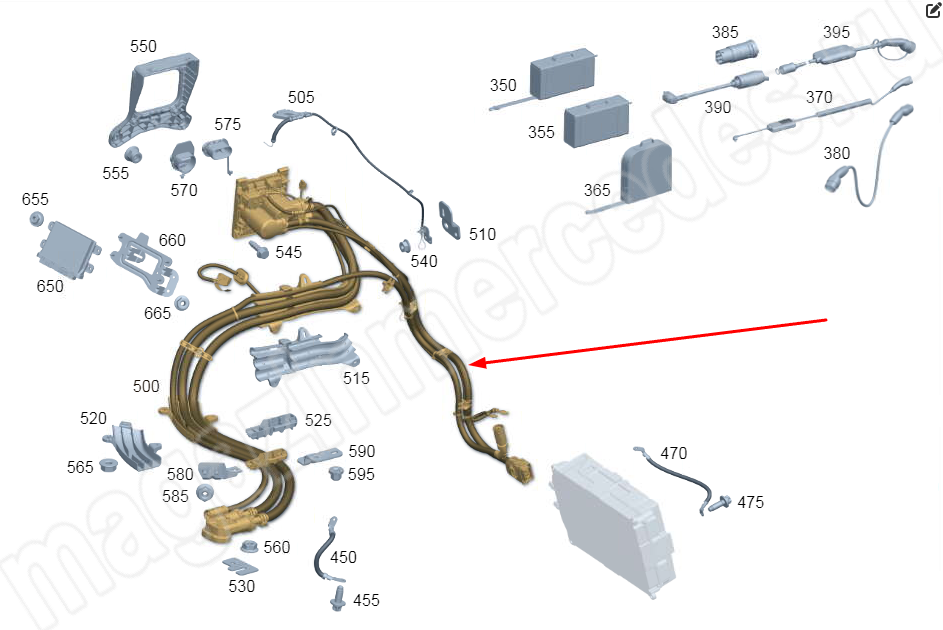 Электрический жгут от зарядного разъёма в боковине Mercedes EQG
