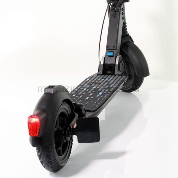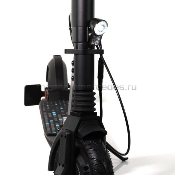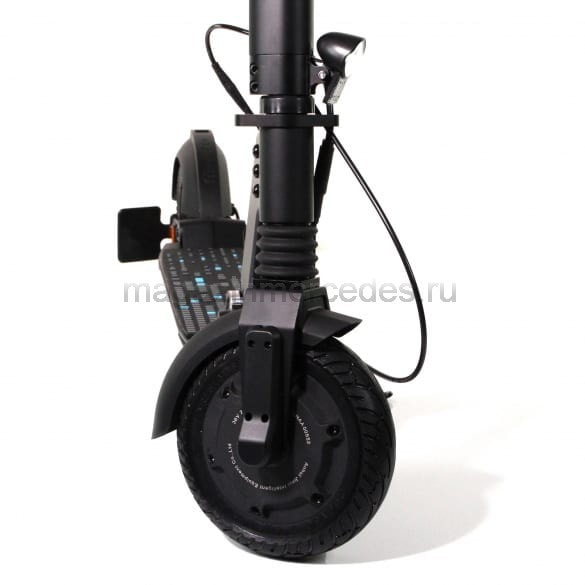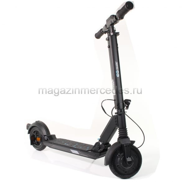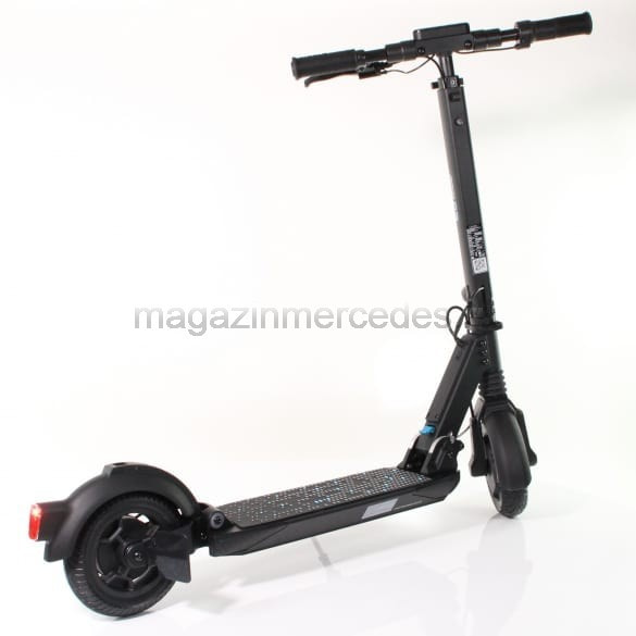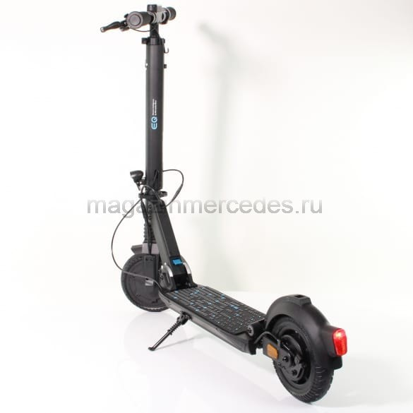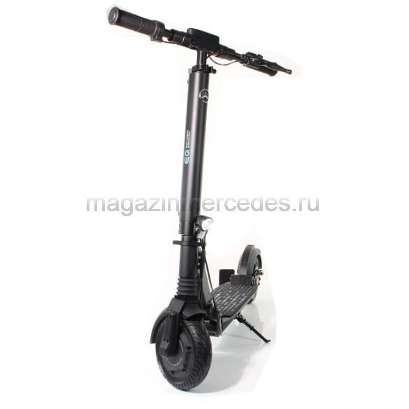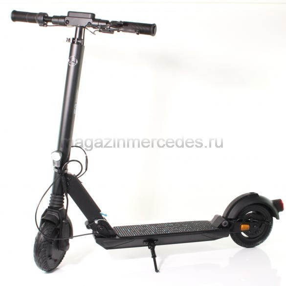 Черный электроскутер специально разработан для преодоления последнего отрезка маршрута и имеет допуск к эксплуатации согласно требованиям StVZO Германии. Кроме того, электроскутер оснащен кронштейном номерного знака и световыми приборами впереди и сзади, соответствующими ПДД. Регулируемая по высоте телескопическая тяга рулевая тяга, а также двигатель мощностью 250 ватт с запасом хода около 25 км при скорости движения 20 км/ч также являются отличительными признаками электроскутера. Очень удобны также механизм складывания ногой и складные ручки. Поворотная ручка газа, передний и задний амортизатор и барабанный тормозной механизм сзади дополняют комплетацию электроскутера. Он оснащен дисплеем и поддерживает приложение micro.