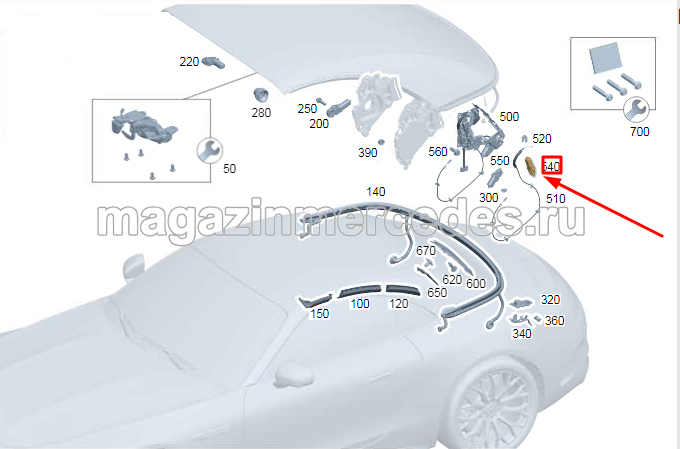 Электропривод для внутренней левой откидной крышки Mercedes SL Class R232